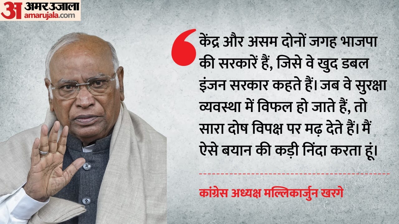 असम दौरे पर पीएम मोदी के बयान पर प्रतिक्रिया देते हुए मल्लिकार्जुन खरगे ने कहा, केंद्र में उनकी सरकार है और असम में भी उनकी सरकार है, जिसे वे डबल-इंजन सरकार कहते हैं। अगर वे सुरक्षा देने में असफल हो जाते हैं, तो वे विपक्षी पार्टियों पर आरोप कैसे लगा सकते हैं? जब सरकार अपनी जिम्मेदारी निभाने में असफल रहती है, तो सारा दोष विपक्ष पर मढ़ देती है। मैं ऐसे बयान की कड़ी निंदा करता हूं।