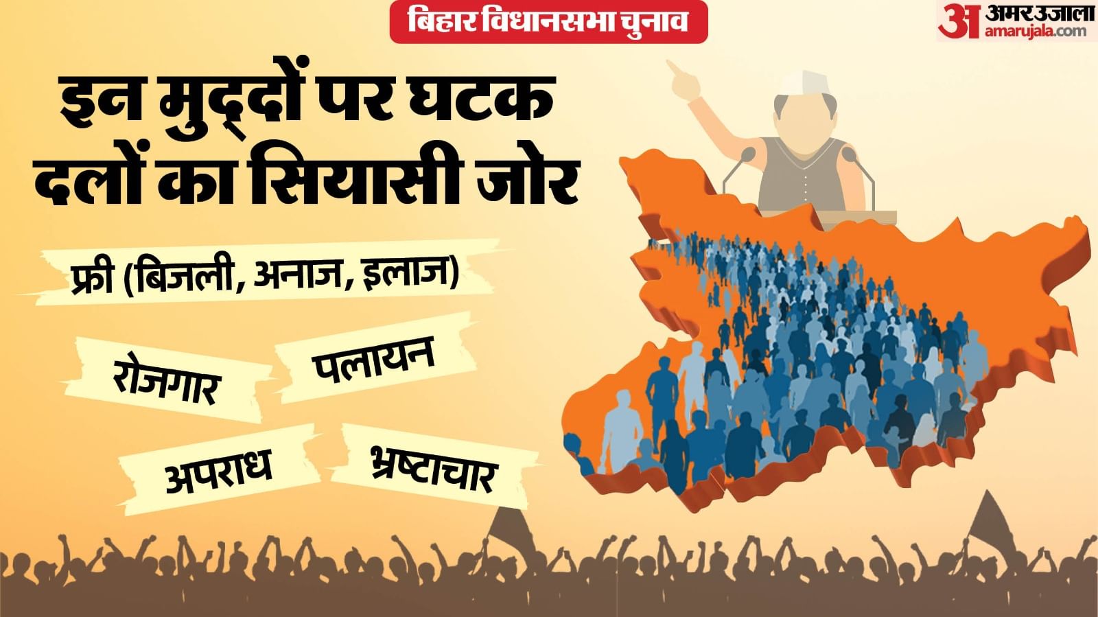 यह पांच मुद्दें हैं, फ्री बीज (बिजली, अनाज, इलाज) रोजगार, पलायन, अपराध और भ्रष्टाचार। मुख्यमंत्री नीतीश कुमार समेत एनडीए के सभी वरिष्ठ मंत्री और नेता अपने भाषण में इन्हीं पांच मुद्दों के इर्द-गिर्द बातें करते हैं और नेता प्रतिपक्ष तेजस्वी यादव भी अपना संबोधन इन्हीं पांच मुद्दों के इर्द-गिर्द करते हैं। आइए जानते हैं इन पांच मुद्दों के बारे में…