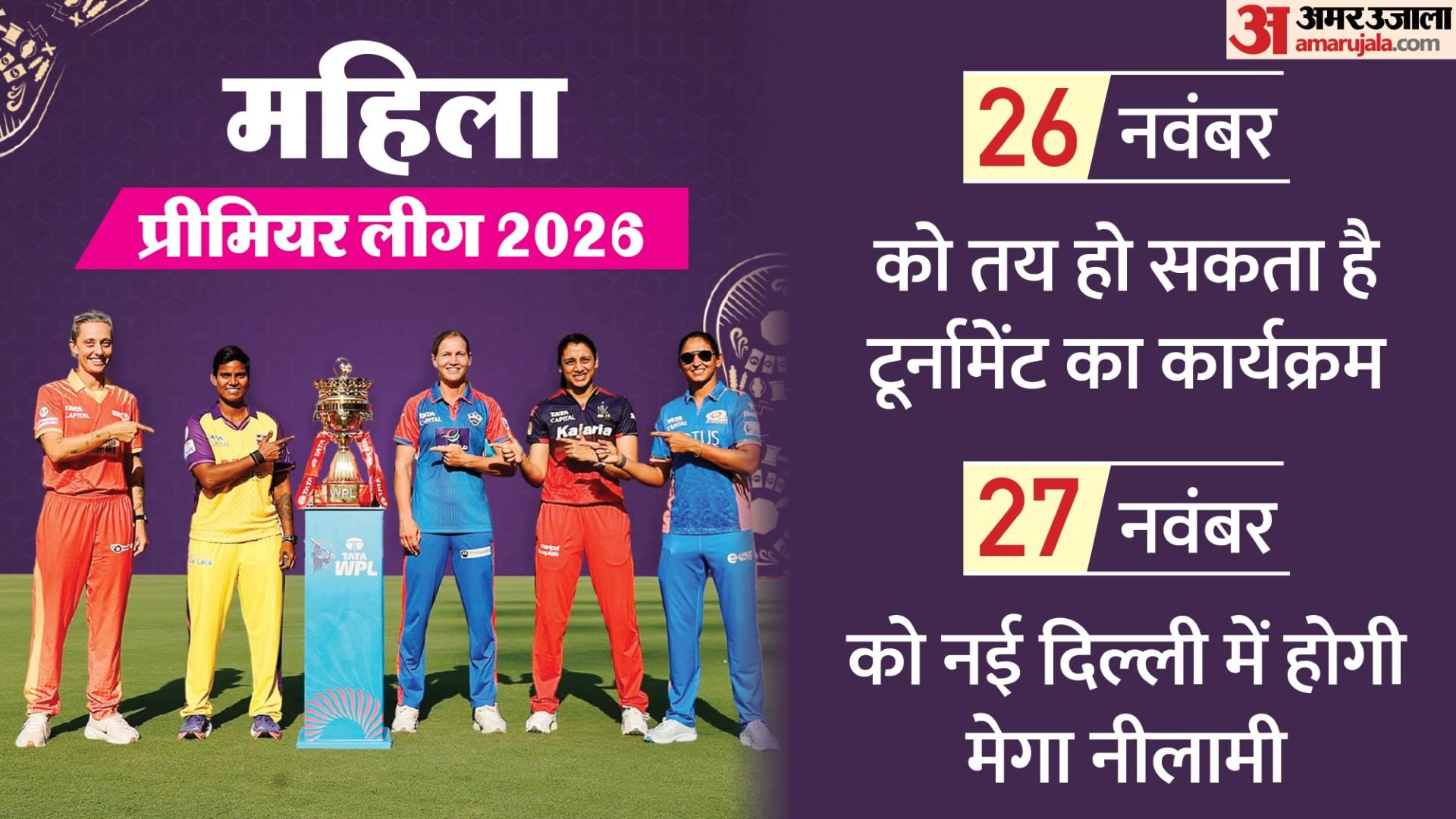 महिला प्रीमियर लीग (डब्ल्यूपीएल 2026) के आगामी सत्र का कार्यक्रम 26 नवंबर (बुधवार) को तय हो सकता है। 27 नवंबर को डब्ल्यूपीएल 2026 की मेगा नीलामी दिल्ली में होनी है, इससे पहले गवर्निंग काउंसिल की बैठक में टूर्नामेंट का कार्यक्रम तय किया जा सकता है। सोमवार को एक अधिकारी ने समाचार एजेंसी पीटीआई से कहा, ‘हम डब्ल्यूपीएल के अगले संस्करण के लिए स्थानों और कार्यक्रमों को अंतिम रूप देने के लिए 26 नवंबर को बैठक करेंगे।’